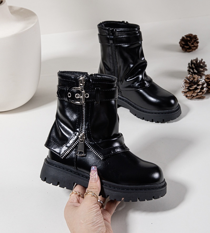 Trendy zwarte veterlaarsjes! Gevoerd van binnen voor warme voeten. Stoer & stijlvol, perfect voor winter en feestdagen. Maat 25 t/m 36.